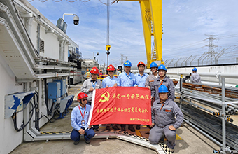 ▲夏樂(lè)(右二)、尹飛虎(右三)、段郎昊(右一) 與福清核電項(xiàng)目維修持處黨支部人員合影